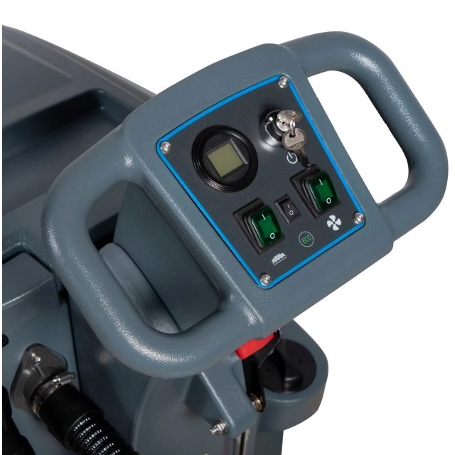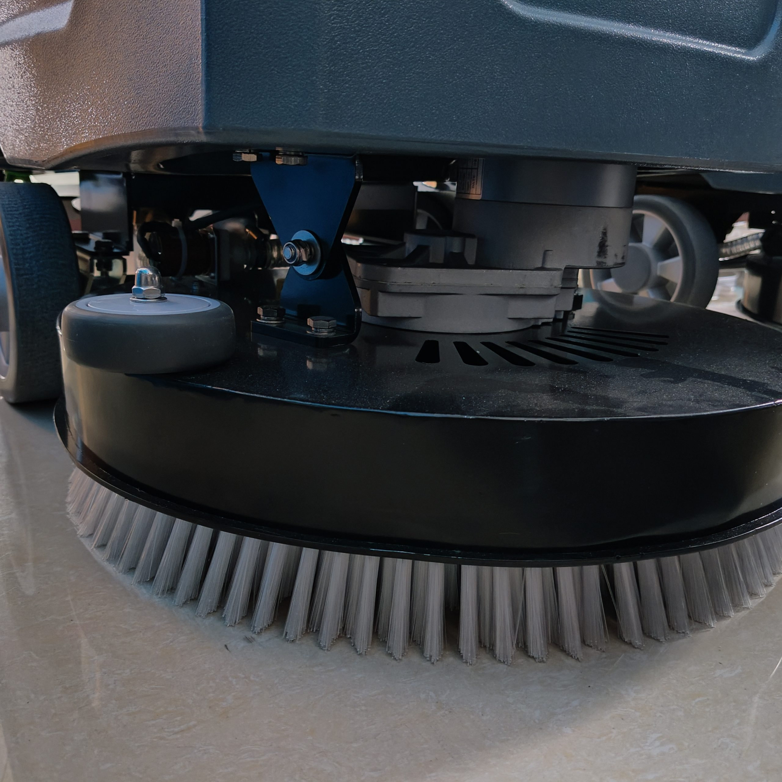 This 24V industrial electric manual floor scrubber is an eco-friendly solution for large warehouses and factories, as it runs on electricity instead of fuel, making it cost-effective and environmentally conscious compared to gas-powered alternatives.